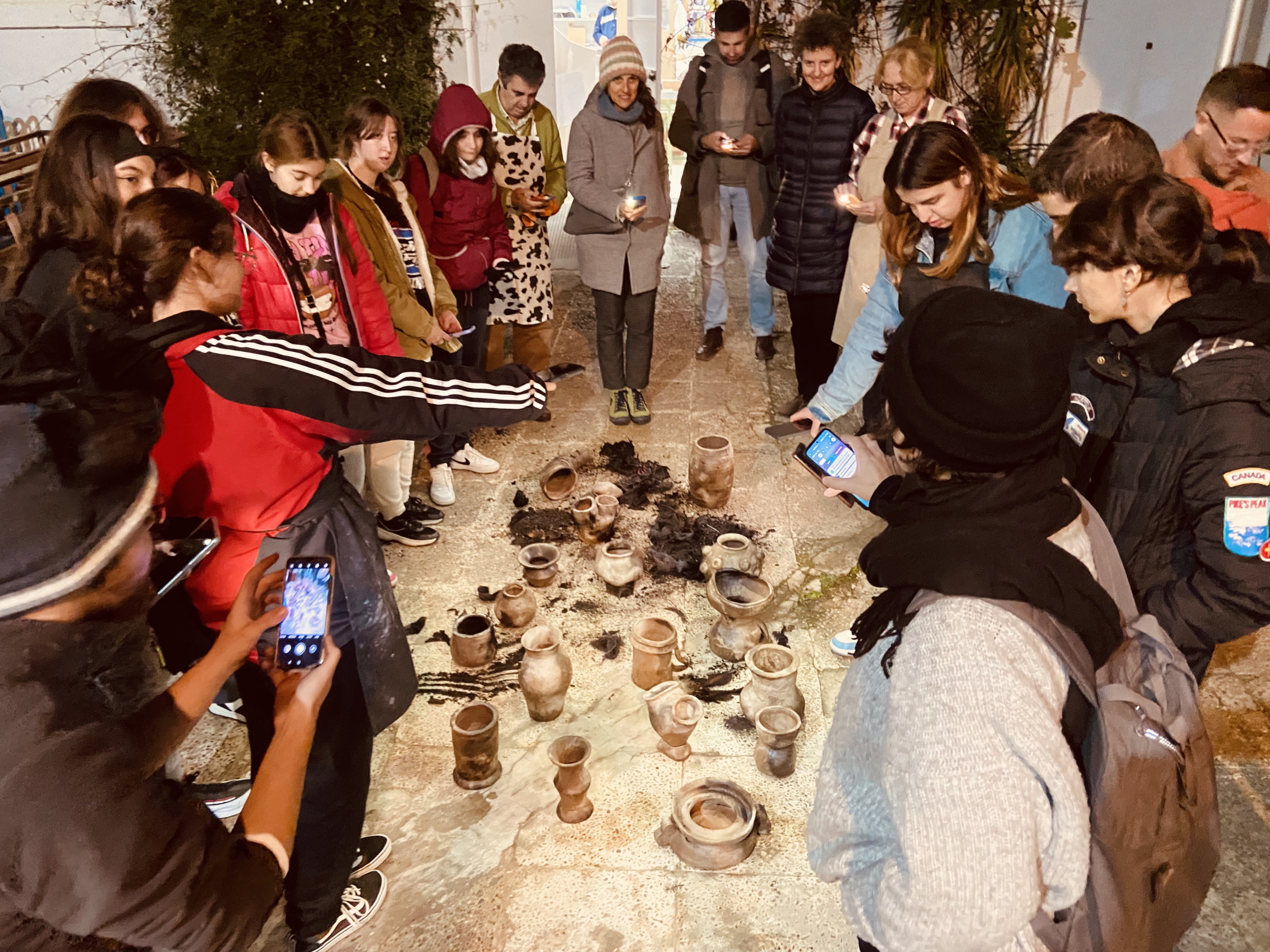 A firing session featuring two traditional techniques: pit firing and raku obvara.